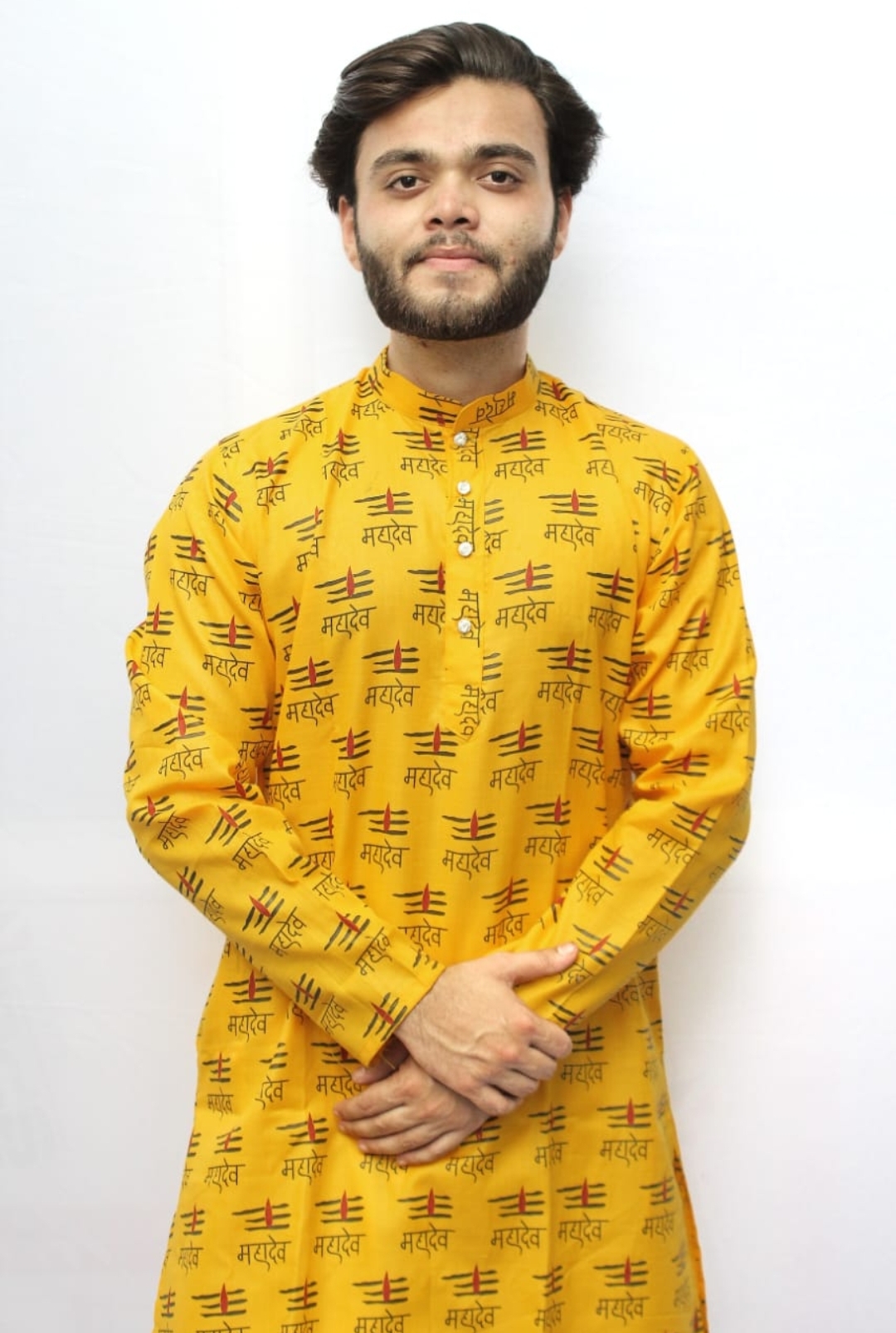Mahakal Men’s Printed Cotton Festive and Casual Long Kurta Yellow
